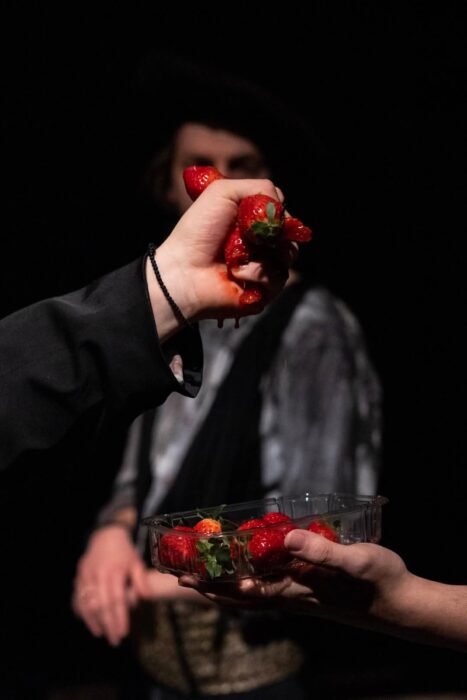 V. Sz.: Ilyen skizofrén helyzetben már a múlt félévben is volt részem a Kepics Mihály rendezte Amphitryon című előadásban. Mózes nagyon jól meg tudta teremteni azt az atmoszférát, ami ehhez a gyors alakváltáshoz kellett. Mindkét szerepnél az volt az érdekes, hogy mi történik a túloldalon, és ennek a feszültsége segített engem.